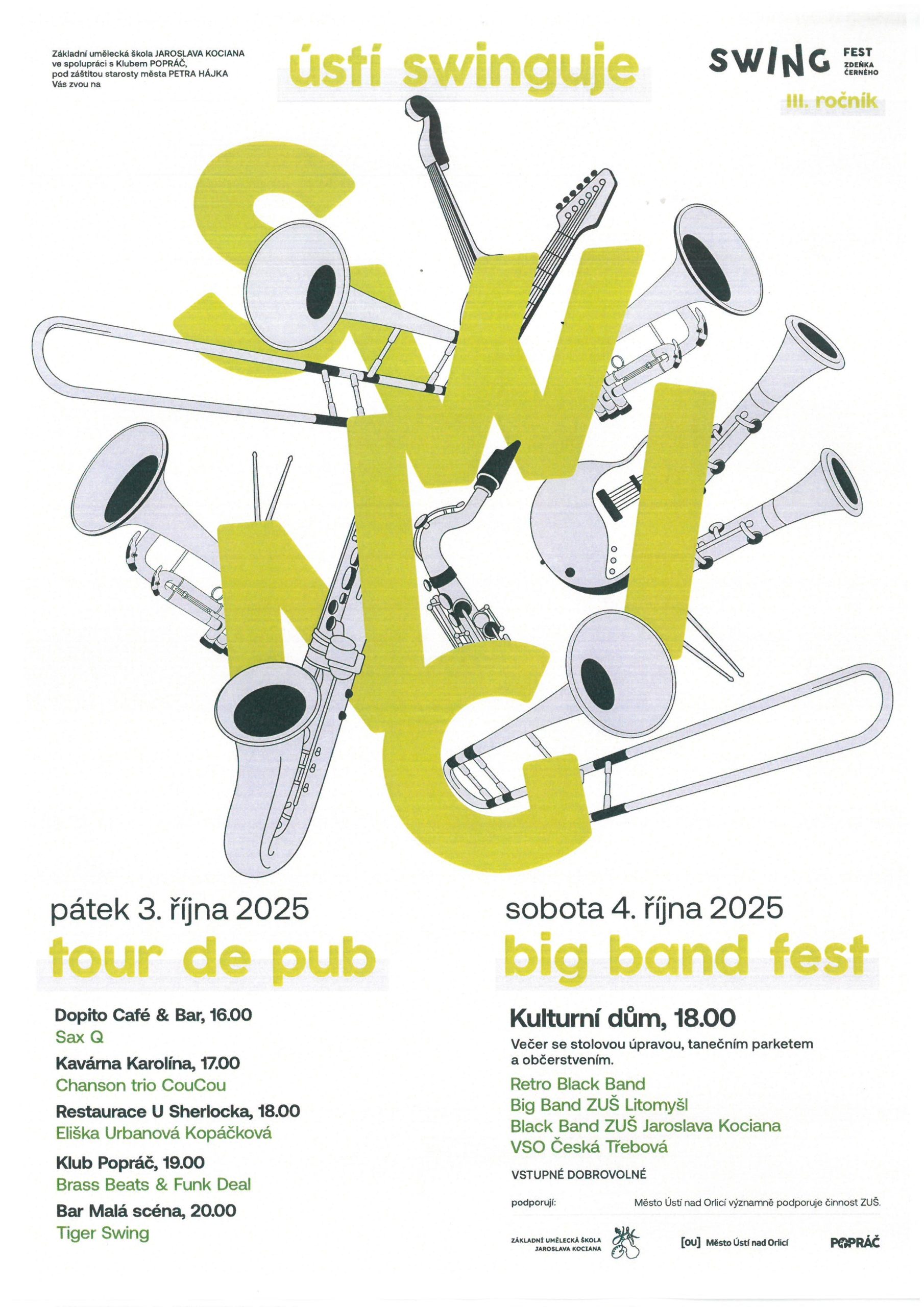 Ve dnech 3. – 4. října 2025 se koná již 3. ročník Swing Festu Zdeňka Černého. V pátek 3. října 2025 bude Tour de Pub – swinguje se v restauracích, kavárnách a klubech., v sobotu 4. října 2025 Big Band Fest v Kulturním domě v Ústí nad Orlicí.