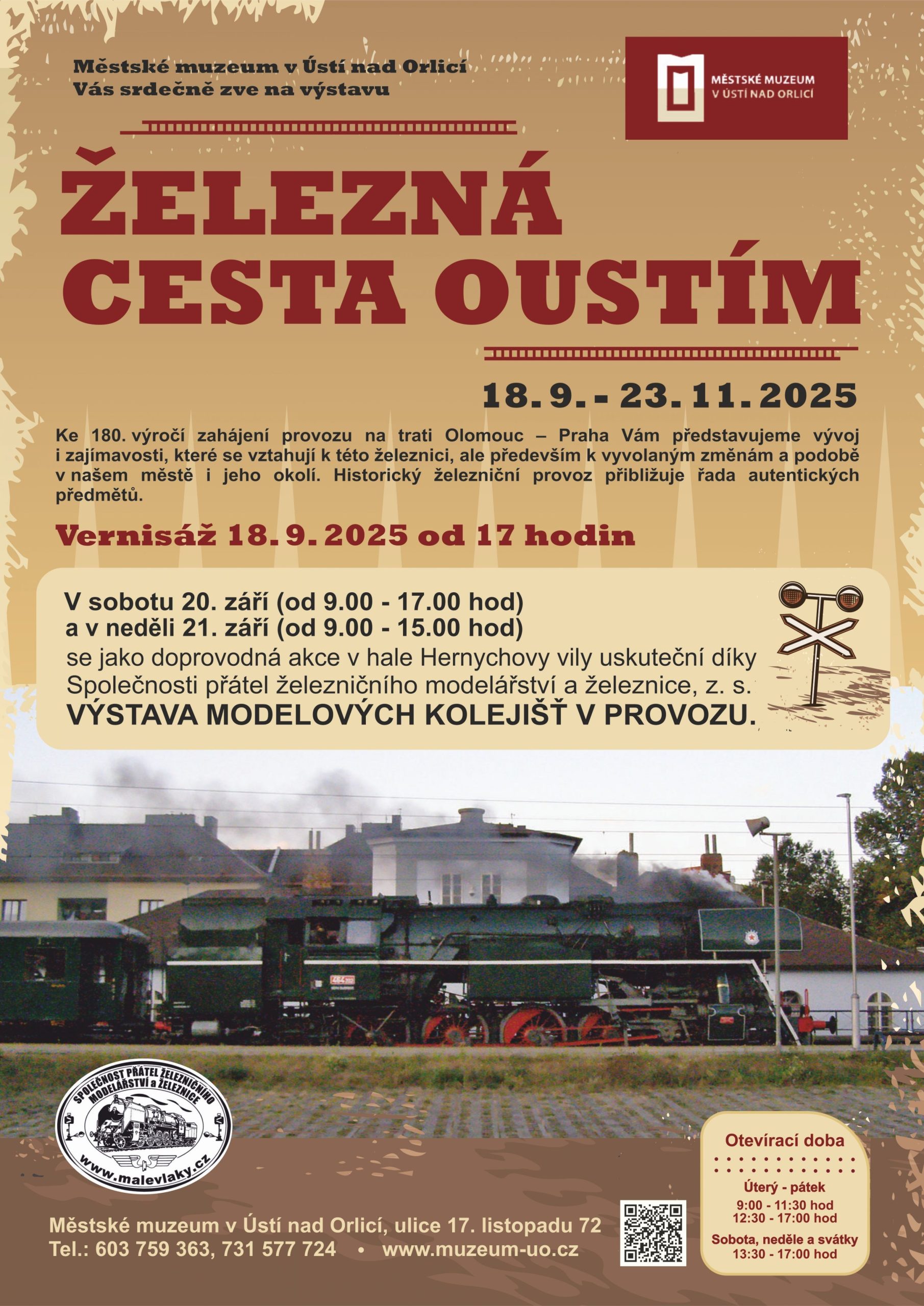 Až do 23. listopadu 2025 můžete zhlédnout výstavu věnovanou železniíci, která již 180 let prochází naším městem. Koná se v Městském muzeu v Ústí nad Orlicí.