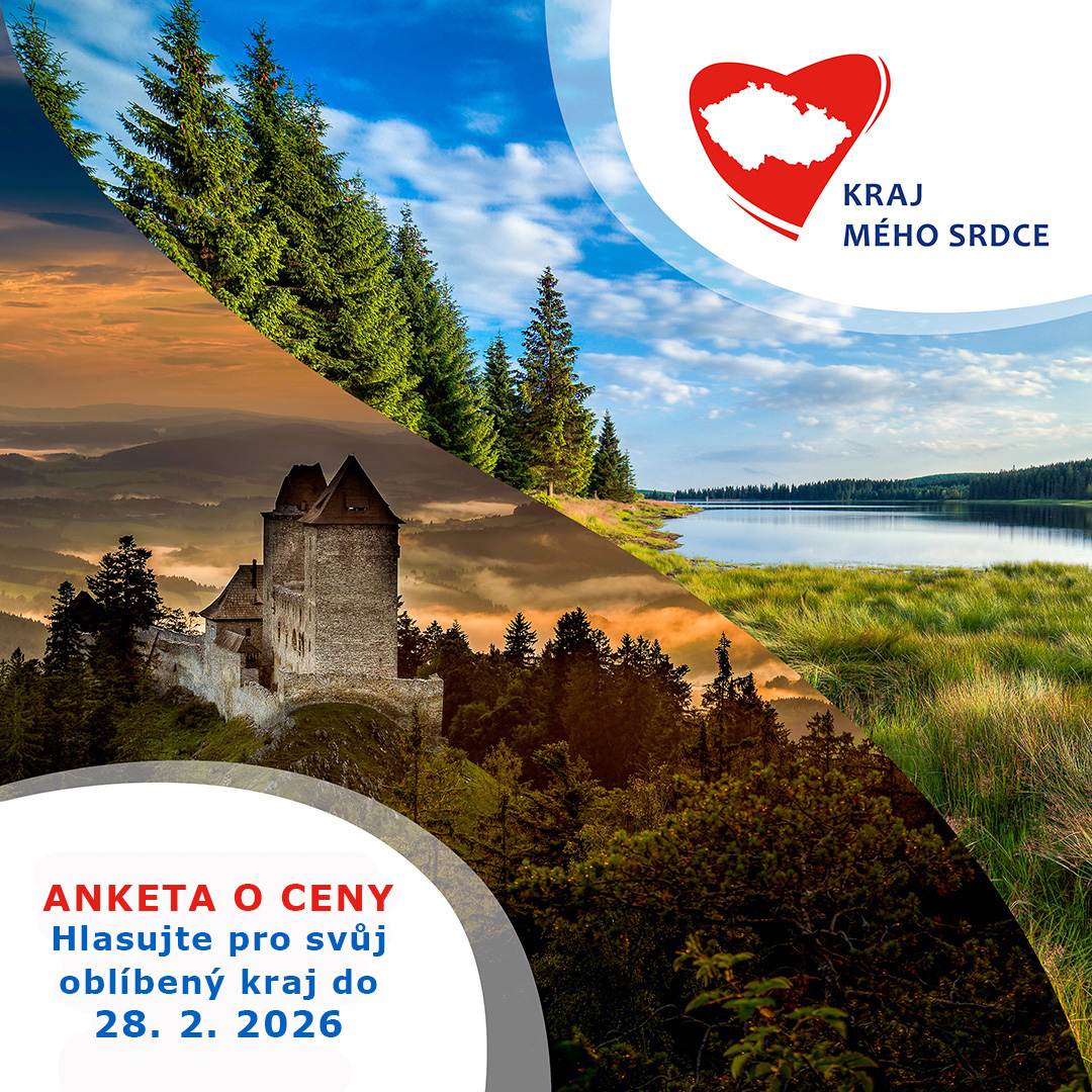 Až do 28. února 2026 můžete hlasovat v anketě Kraj mého srdce 2025 na turistickém portálu https://www.kampocesku.cz/anketa. Výsledky již XIV. ročníku ankety budou uveřejněny v dubnovém vydání magazínu KAM po Česku 2026 a na uvedeném portálu. Výherci z řad hlasujících budou kontaktováni. Plakátek Tisková zpráva