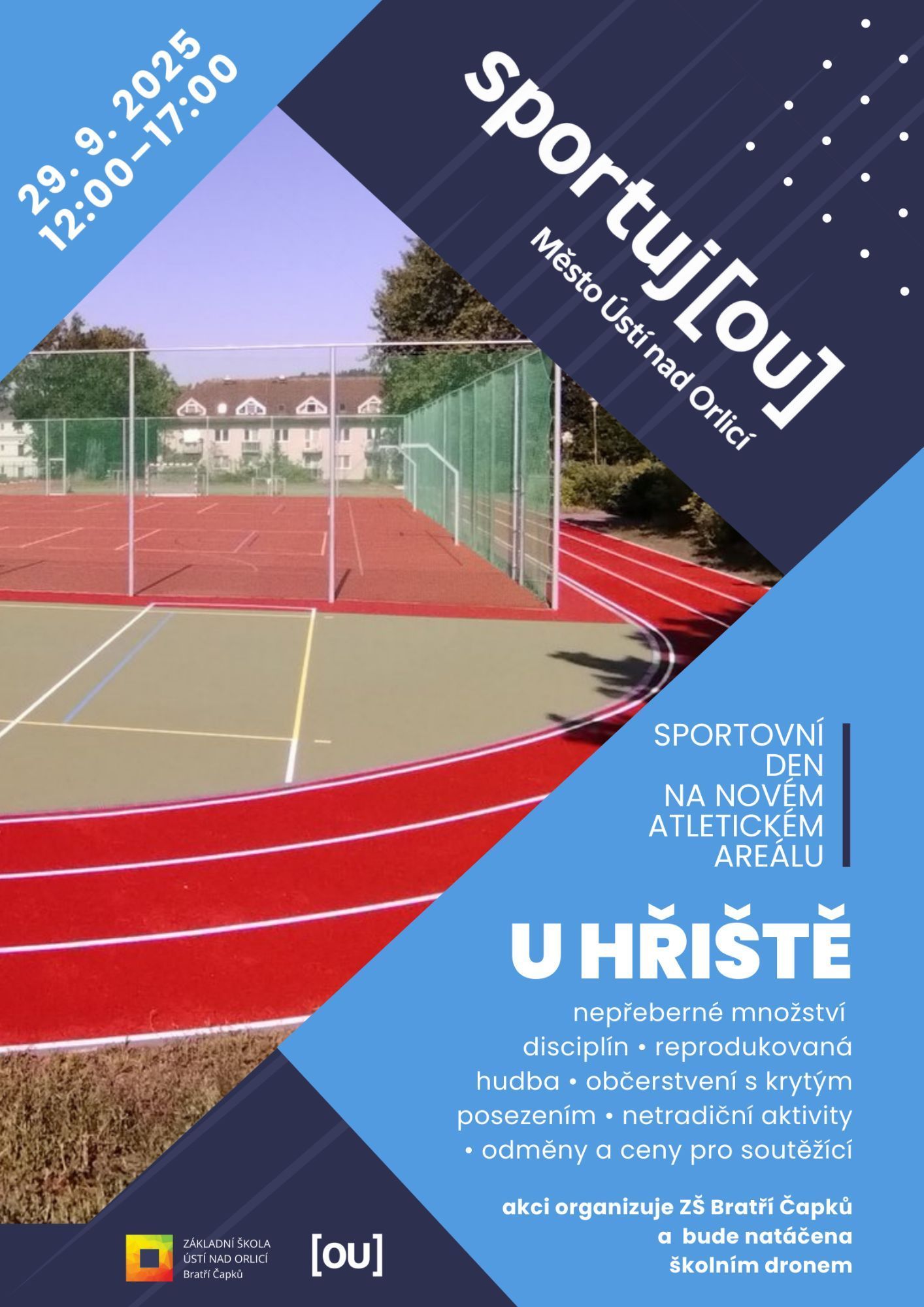 V pondělí 29. září 2025 od 12 do 17 hodin Vás zveme na sportovní den na novém atletickém areálu U Hřiště. Plakátek s informacemi